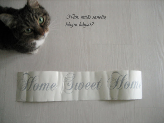 >Oi että kun tykkään tuosta teidän tarrasta! Itse olen myös haaveillut omaan kotiin hankittavaksi, mutta eipä ole tullut vielä sopivaa vastaan.. Ongelma on myös meillä sama, että mihin sen sitten laittaisi..Teillä se varmasti sopisi loistavasti tuohon aulaan tuolin yläpuolelle. Tuo valaistus on myös kiva, kun se valaisisi tekstiä ja toisi sen esille kauniisti. :)
