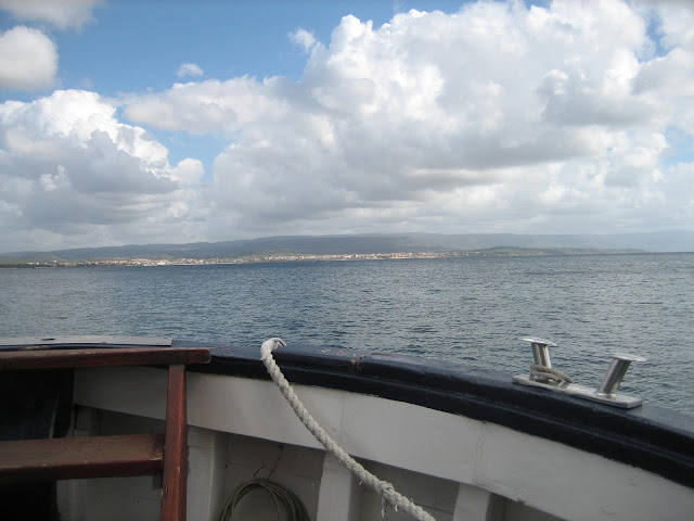 Meidän matkaan tuli pieniä mutkia, kun pääsimme Capo Caccian juurelle. Tuuli oli hirmuinen ja aallot valtavia! Suolaistakin suolaisempaa merivettä roiskui veneen sisälle ja tavarat lenteli. Olin jo pienimuotoisen paniikin kourissa Capo Caccian juurella, kun olimme pysähtyneenä emmekä me matkustajat tienneet mitä tapahtuu… Yhtäkkiä kapteeni käänsi laivan ja palasimme takaisinpäin. Miehistön jäsen kertoi myöhemmin, että aallot siinä kohdassa olivat neljän metrin korkuisia emmekä voineet jatkaa alkuperäistä reittiämme. Neljän metrin aallot on melkoset tollaselle veneelle :D.