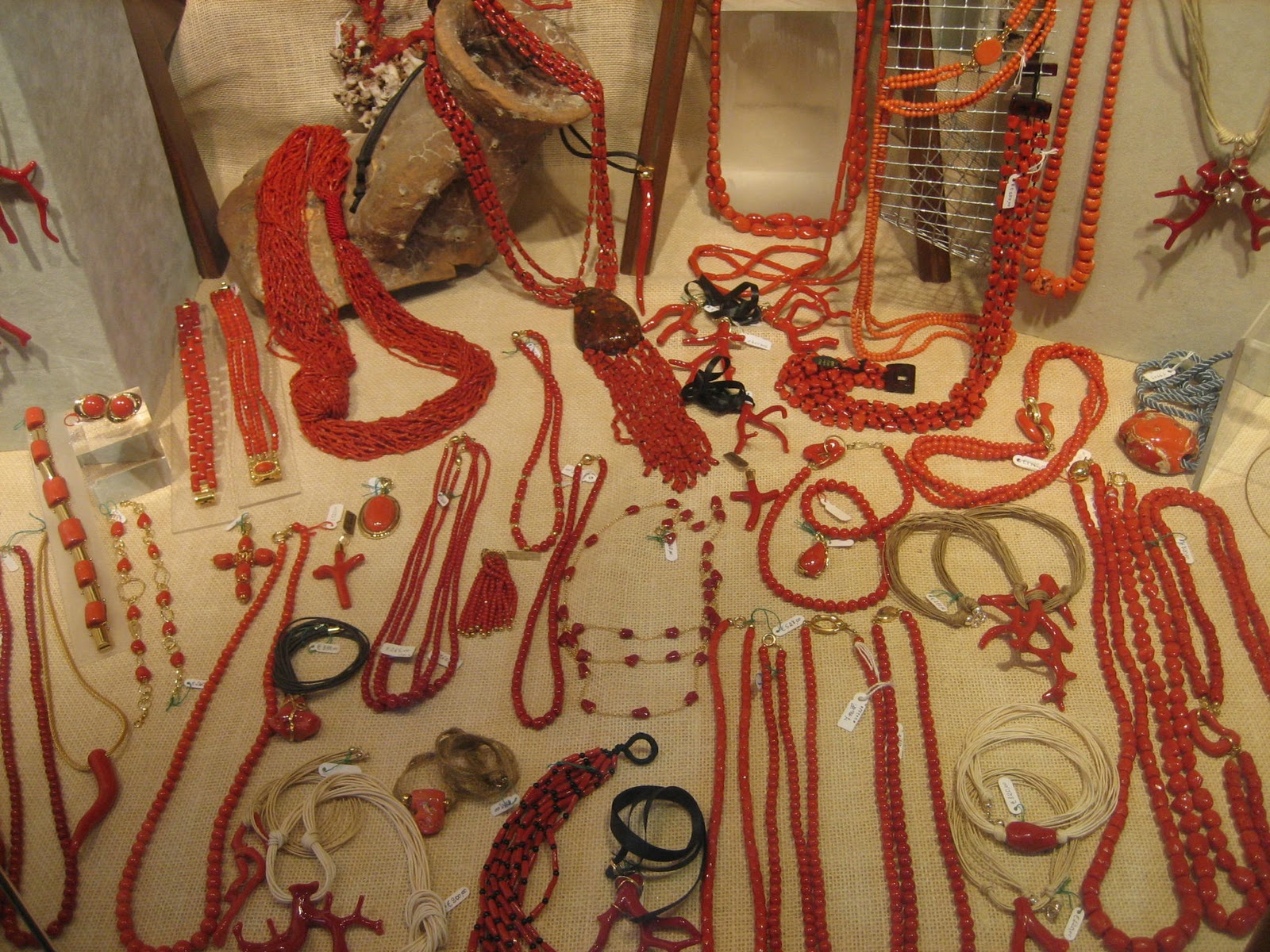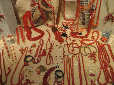Vanhassa kaupungissa oli toinen toisensa perään näitä korallikoruliikkeitä, olimmehan korallirivieralla Riviera del Corallo: (korut oli kalliita!!!)