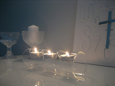 >KAUNISTA!!!Ihanan valkoista!! <3 Totta,himmentimet ovat ihan ehdottomat,niillä saa juuri sopivan tunnelman aikaiseksi!:)Mistä olet muuten ostanut tuon kellon?Se on niin kaunis myös!:)
