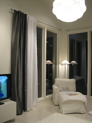 >Verhot sopivat erittäin hyvin olohuoneeseenne, todella kauniit! Ja onneksi se verhohärdelli sai onnellisen lopun:)