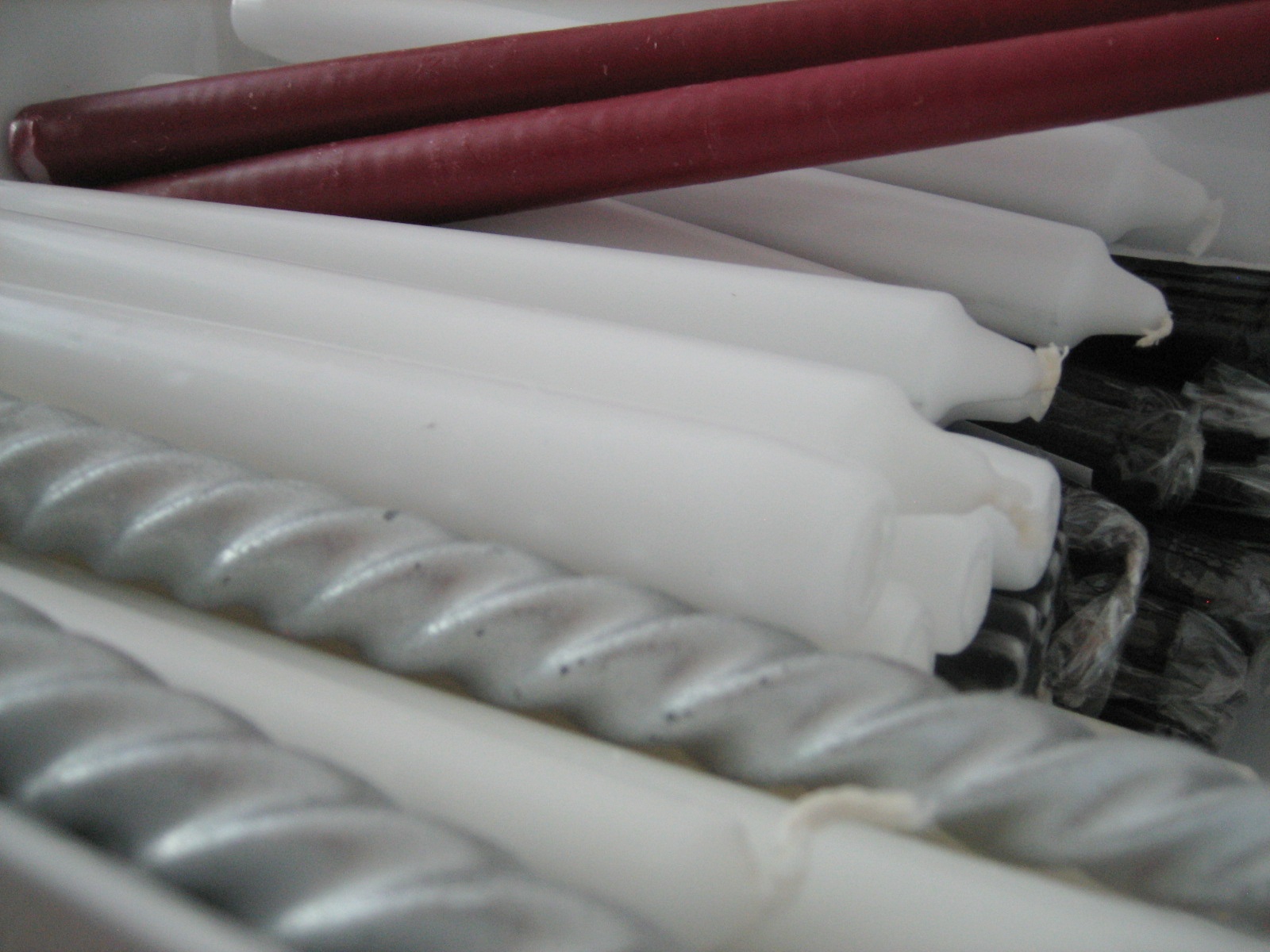 … kolme avattua pussillista valkoisia tuikkuja ja lisäksi muutama punainen, koska jouluhan on aivan just enkä varmaan enää ennen sitä ehi kauppaan…