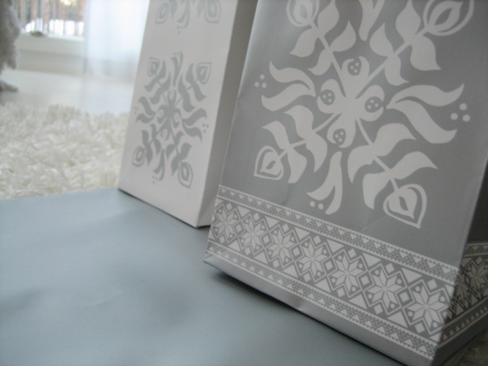 >Kauniita lahjapussukoita ja et ole ainoa joka ei ole ostanut yhtään lahjaa.Meillä on tehty sopimus aikuisten kesken että lahjoja ei ostella ja siinä säästyy monelta vaivalta:),mutta minulla ei ole mitään hajua mitä ostaa noille meidän muksuille(4kpl).Toiveita eivät osaa kirjoittaa ja oikein mitään super suosikkiakaan ei ole tullut eteen,mikä olisi pakko saada.Paniikki iski tänään,kun katsoin kalenteria että kohta on ostettava lahjat,aika loppuu kesken :)