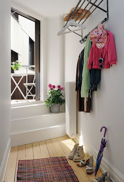>Sisustuslehtien eteiset ovat kovin kauniita, mutta niitä katsellessa tulee aina mieleen, että missä on kuvien kotien omistajien kaikki päällysvaatteet ja muut tavarat, jotka käytännön syistä majailevat eteisessä. Ehkä ne tavarat on vaan roudattu sivuun, jotta tulee nätimpiä kuvia?! : ) Tai sitten asunnoissa on vaan niin käytännölliset ratkaisut ja säilytystilat, että vain tietyt valitut tuotteet pääsevät eteistilaa somistamaan.