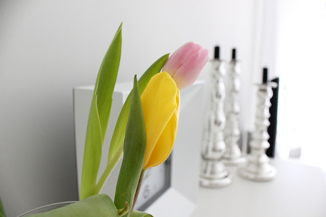 >Tulppaanit ovat aina ihania ja kivasti sopii yhteen nuo keltainen ja vaaleanpunainen :) Tulipas oikein keväinen olo noista sinun kuvistasi :)