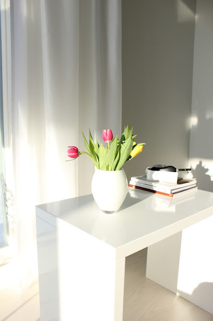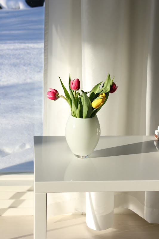 Tämä viikko on ollut melko tulppaanintäyteinen, olette kenties sen huomanneetkin ;). Tämä viikko on ollut mulle (muutamastakin asiasta johtuen) myös melko kiireinen, mutta ensi viikolla luvassa sitten taas enemmän muutakin sisustusjuttua! Tosin en missään nimessä mene lupaamaan, että nämä tulppaani-/aurinkokuvat oli tässä :D.