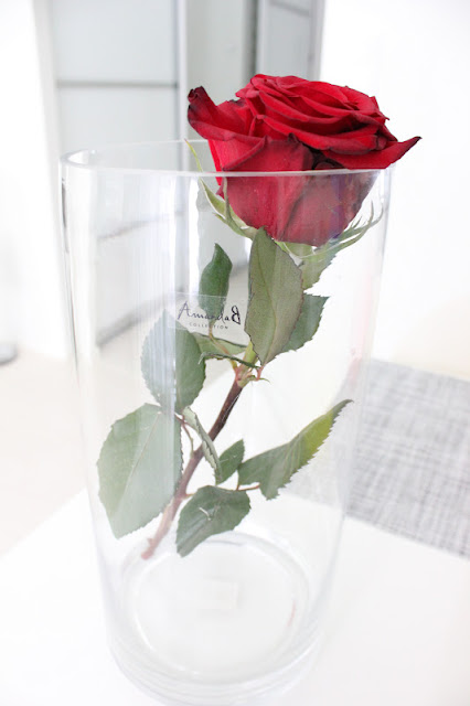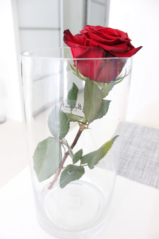 Ruusuja maljakoissa ja suklaapiirakan koristeena.