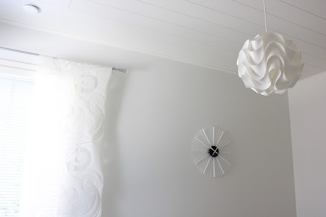 Aluks kokeiltiin sitä yhteen makuuhuoneeseen ja sitten tähän toiseen (kiva mies kun jaksoi testailla <3). Tänään upea Le Klint lähti kuitenkin takaisin sinne mistä tulikin. 172A oli liian pieni meidän tarkoitukseen, näytti hassulta katossa. Siispä vaihtarina tulee seuraava koko: 172B. Nyt odotellaan sitten sitä. Mutta mikäs tässä on odotellessa, kun ei ole mihinkään kiire.