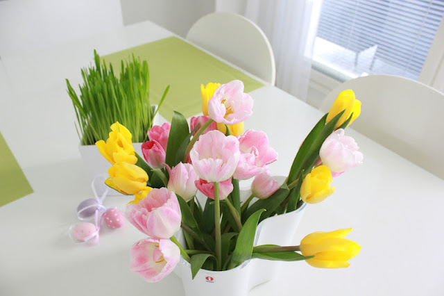 Eli valkoisella maalatulle seinälle tulen kehittelemään jotain, onko se sitten ne kallat vai jotain muuta, jää nähtäväksi! Odottelen tässä saunan lämpenemistä ja lankalauantain saunan jälkeen suuntaamme ihastelemaan pääsiäiskokkoja. Kiva päästä nauttimaan raikkaasta ulkoilmasta maalausten jälkeen, sillä paikkamaalailimme kotona myös muita seiniä: lähes kahden vuoden asumisen aikana on jo ehtinyt syntyä pieniä jälkiä esim. imurista yms. Maalattujen seinien kätevyyttä, nyt taas kuin uudet ;)