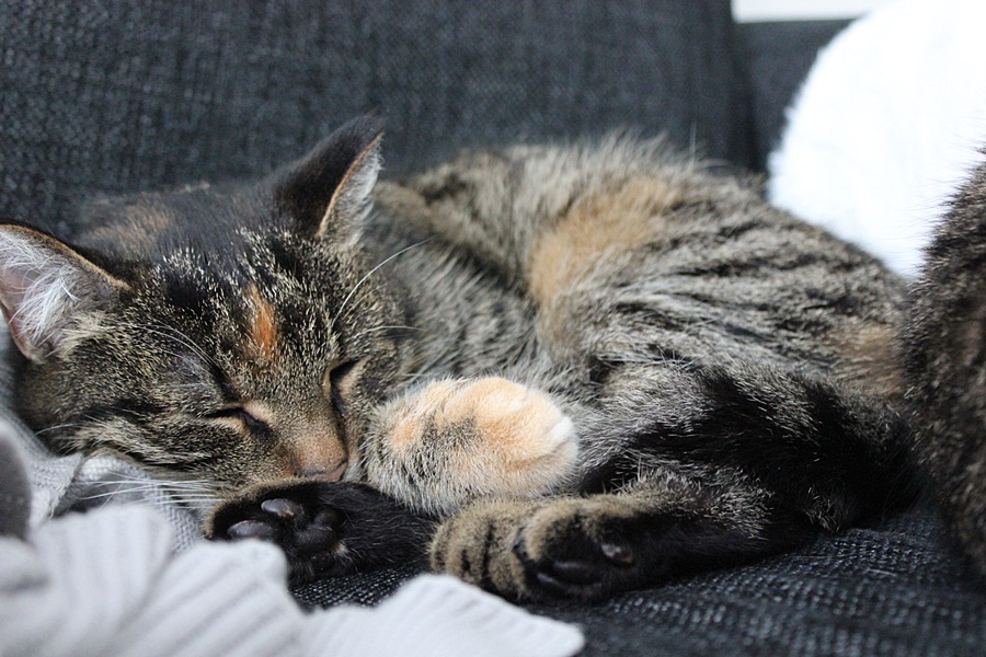 Toinen nukkuu mielellään rauhassa ilman häiriöitä, mutta aloittaa kehräyksen välittömästi kun joku pikkaisenkaan silittää. Joskus kyllä tulee tällainen ilme, joka sanoo aivan kuin et joo kiva, mut ei mua kato tartte silittää enää silloin ku mä jo nukun
