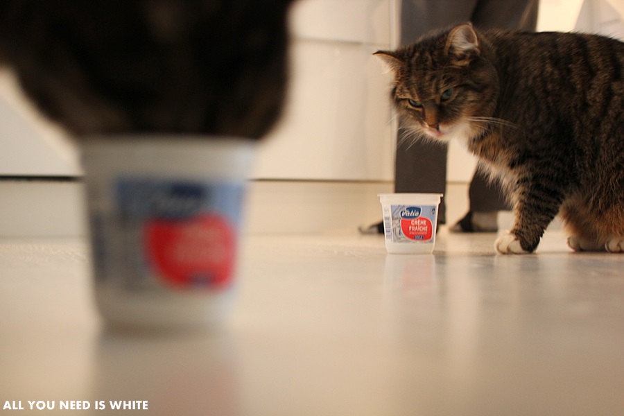 Mahtava toi viimeinen kuva! =D Oikein tuima katse, että ai onko sun purkissa vielä jotain, kun mulla alkaa olla loppu! Kissat on vaan niin huippuja. =)