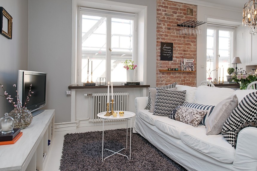 Ensimmäisten kuvien kodissa ihastuttaa vaaleus, rouhean tiiliseinän ja koristeellisuuden vastakohtaisuus sekä tietynlainen kodikkuus. Tämä toisen kodin sisustus saa plussaa kauniista esineistä ja tekstiileistä, valoisuudesta sekä sävyjen harmoniasta.