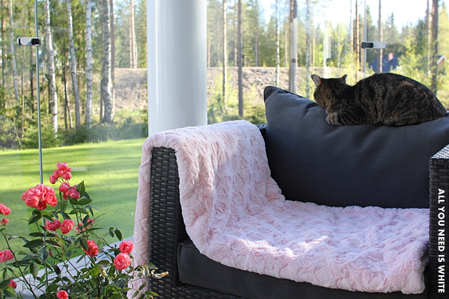 Tulipa muuten täydelliseen aikaan lasitettua meidän terassi! Lehdistä saa lukea, miten nyt on ollut kylmin alkukesä 24 vuoteen, joten terassilla tuskin olisi tullut paljoakaan nyt touko-kesäkuussa hengailtua. Nyt asian laita on kuitenkin toinen, kiitos lasituksen, jonka hankimme blogiyhteistyökumppaniltani Lumonilta.