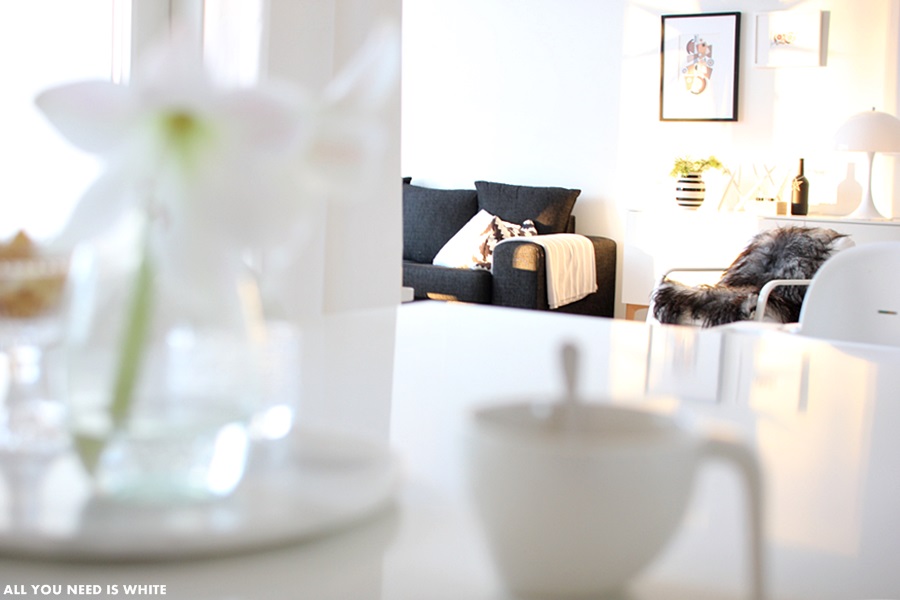 Eilen pojan päiväuien aikaan sain todistaa aivan ihanaa valoa olohuoneessa! Tuon auringonvalon myötä olohuoneen ikkunoiden isot tähdet näkyivät kauniina varjoina valkoista seinää vasten. Ihana näky, mutta uskomattoman äkkiä aurinko laski ja se oli poissa. Tänään on kuitenkin yhtä aurinkoinen päivä ja pakkastakin riittää! Tällä hetkellä seinällä on tähtien lisäksi joulukuusen varjo, sillä kokosimme sen eilen. Havahduin yhtäkkiä, että hyvänen aika: jouluun on alle kaksi viikkoa ja joulukuusestahan täytyy ehtiä nauttia ennen jouluakin! Joulun jälkeen sitä ei viitsi enää päiväkausia katsella, joten nyt on joulukuusen aika. Kuusi on olohuoneessa vielä ihan sellaisenaan, mutta tänään se saa valot ylleen. Onpa mukavaa tunnelmoida sitten illalla joulukuusen valojen loisteessa ♥