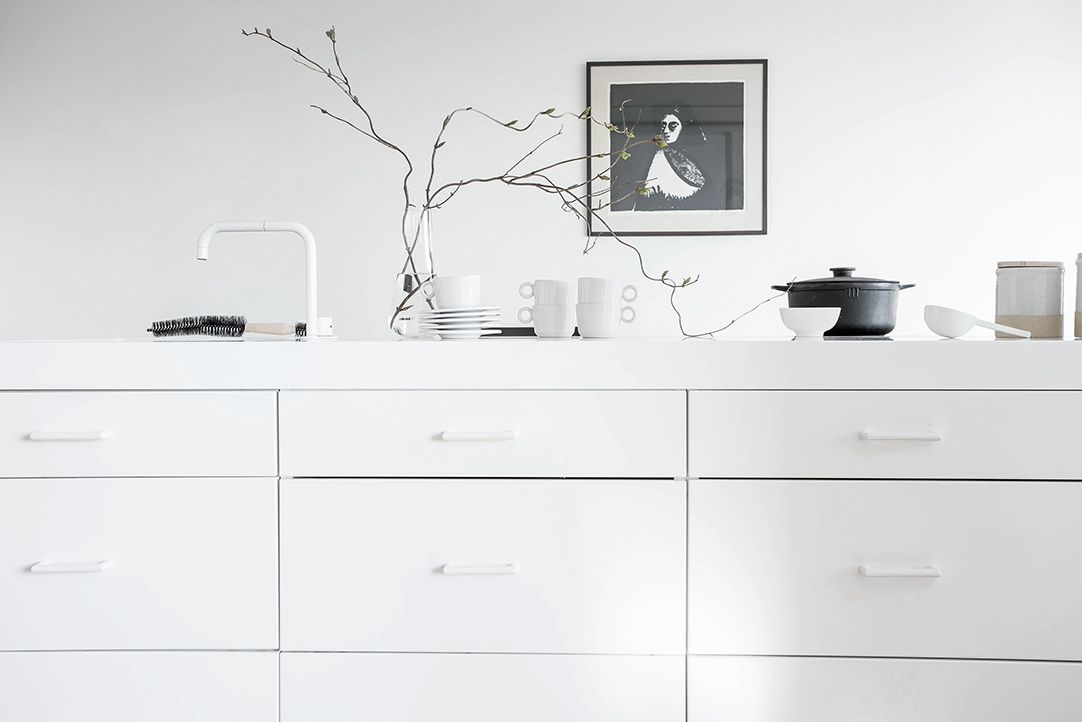 Erityisesti keittiö kiinnitti huomioni: aivan unelma! Virtaviivainen, kaunis ja käytännöllinen, johon käyttöesineet ja kalanruotoparketti tuovat sopivasti lämpöä. Ja mitkä maisemat kokkaillessa!