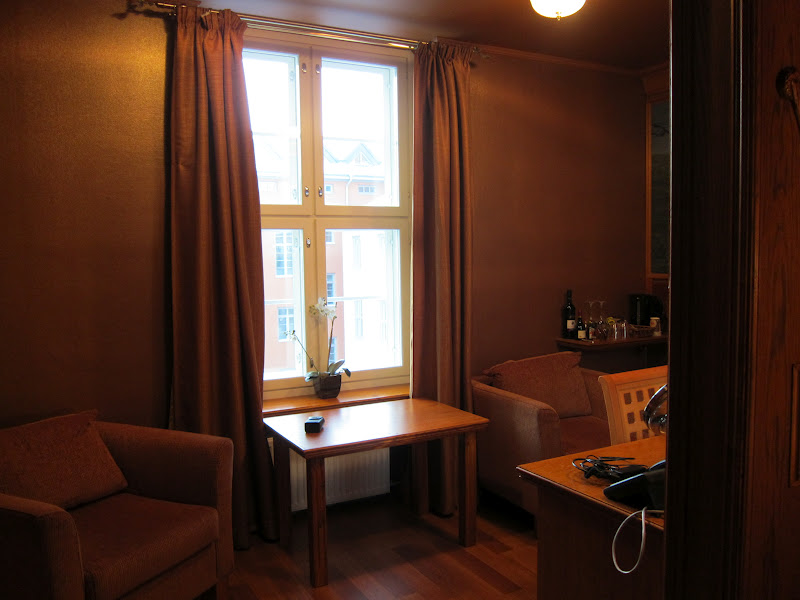 Kovin runsas ja tummanpuhuva sisustus vallitsi tässä sviitissä, suunnittelija minussa nosti heti päätään ja miehen kanssa tulikin yhdessä suunniteltua uusiksi koko sviitti :D
