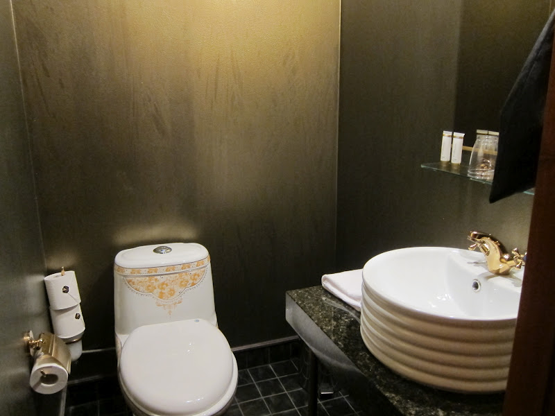 Mietittiin, että ois ollu aikoinaan loistava idea sisustaa hotellin 68 sviittiä eri tyyleihin: osa tällaista runsasta, melko massiivista sisustusta, osa modernia lookia, osa romanttista jne. Sitten aina huoneen varatessaan saisi toivoa, minkä tyylin sviitin mieluiten ottaisi :)