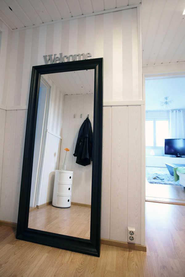 Kodin sisustuksessa on käytetty pääväreinä harmaata, valkoista ja beigeä sekä hieman mustaa. Materiaalivalinnat teimme yhdessä, vaikka sisustaminen onkin enemmän minun hommaa. Tykkään myös maalata ja tuunata kaikenlaista ja kotimme sisustuksessa onkin käytetty paljon mieheni valmistamia huonekaluja, joita voi huoletta muokata vaikka väriä vaihtamalla.