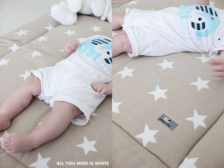 Näissä ensimmäisissä kuvissa näkyykin useampi ihanuus: beige Baby’s Only Cable Chenille -torkkupeitto, joka on päässyt ahkeraan käyttöön. Tällä hetkellä se on pojan sängyssä toisen puolen reunapehmusteena. Sängyssä roikkuva Baby’s Onlyn pehmeä tähtisoittorasia on niin ikään käytössä tänäkin päivänä. Tätä soittelin vauvalle myös raskausaikana; tähden narua vetäisemällä ilmoille kajahtaa kaunis Tuiki tuiki tähtönen. Näitä useita tuotteita on saatavana useammassa sävyssä: tähtisoittorasiaakin valkoisen lisäksi mm. harmaana ja beigenä. PikkuVaniljan myymiä tuotteita yhdistääkin kauniin hempeä ja neutraali värimaailma – mikä sopisikaan paremmin pienelle vauvalle! Plussaa myöskin tuotteiden monikäyttöisyydestä: useille tulee käyttöä vauva-ajan jälkeenkin.